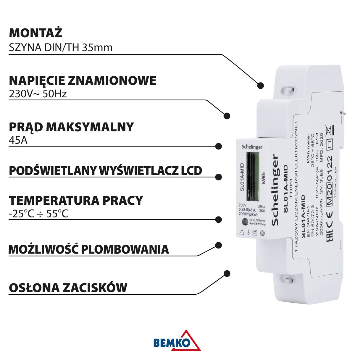 Energy Meter 1-Phase MID SCHELINGER. 230V~ 50Hz, IP51