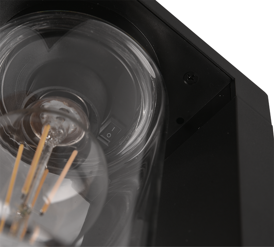 See matt must välisvalgusti loob õdusat atmosfääri tänu klaasvarjule ning süttib automaatselt hämaruse saabudes, muutes su õueala turvalisemaks ja kaunimaks.