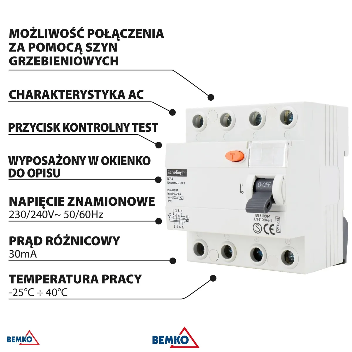 Differential Circuit Breaker AC 4P 40A 30mA SCHELINGER.