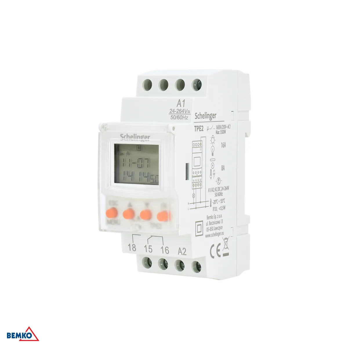 Electronic Timer 7 Days. Nimipinge: AC/DC 24-264V~ 50/60Hz. Kaitseklass: IP20. Karakteristik: AC. Mõõtmed: 36mm × 68mm × 83mm.