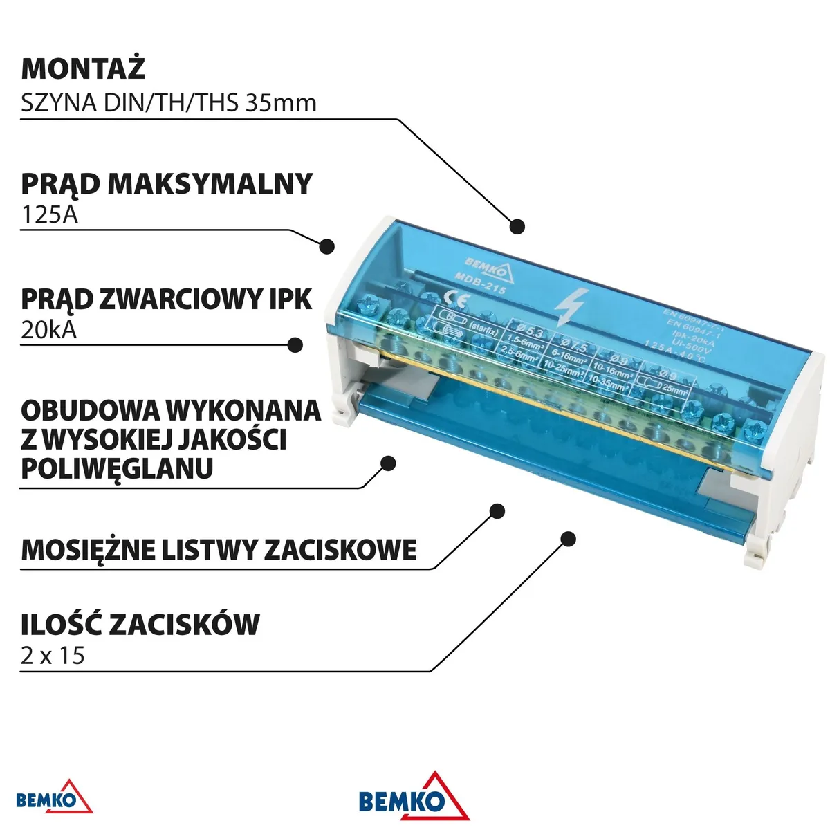 Jaotusplokk 30 klemmiga (2×15) paigaldamiseks 35mm DIN-liistule.