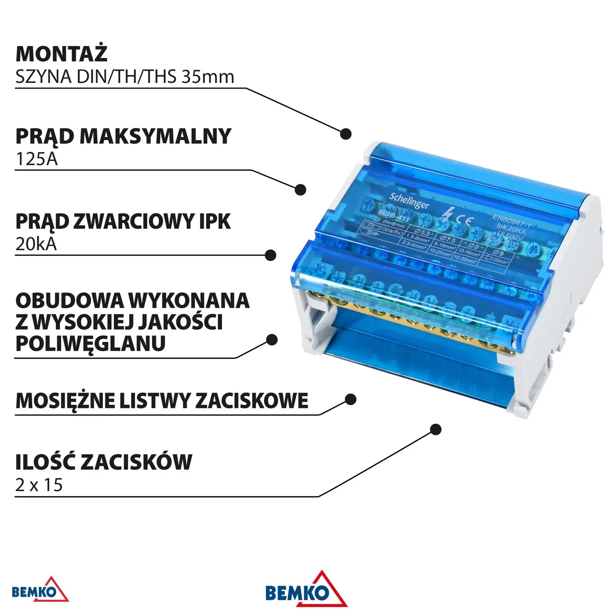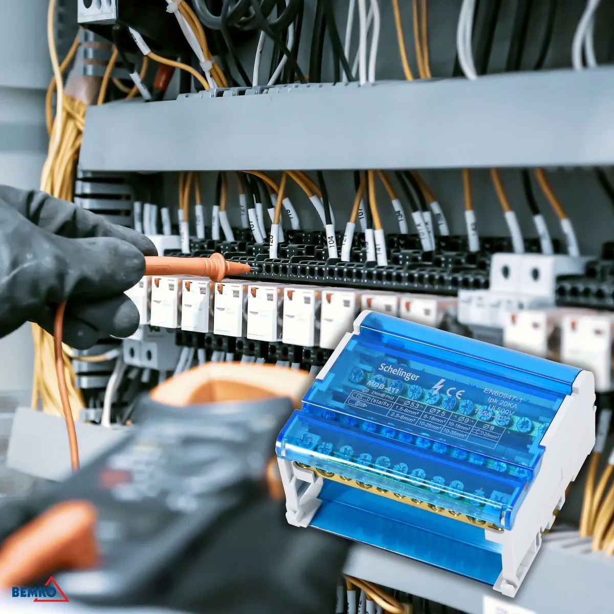 Schelinger jaotusplokk 44 klemmiga (4×11), maksimaalne vool 125 A.