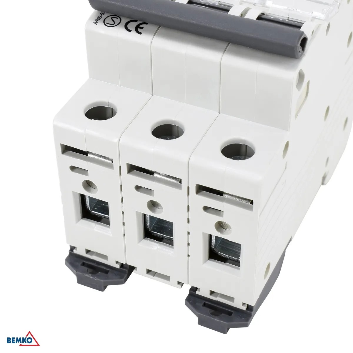 Schelinger 3-faasiline kaitselüliti nimivooluga 40A ja C-tüüpi väljalülituskarakteristikuga. Nimipinge 400V~ 50/60Hz, lühisvool 4500A (Icn), isolatsioonipinge 415V (Ui), impulsspinge 4kV (Uimp). Paigaldus 35mm DIN-liistule, hõivab 3 moodulit, kaitseaste IP20, töötemperatuur -5°C kuni +30°C. Energia piiramise klass 1.