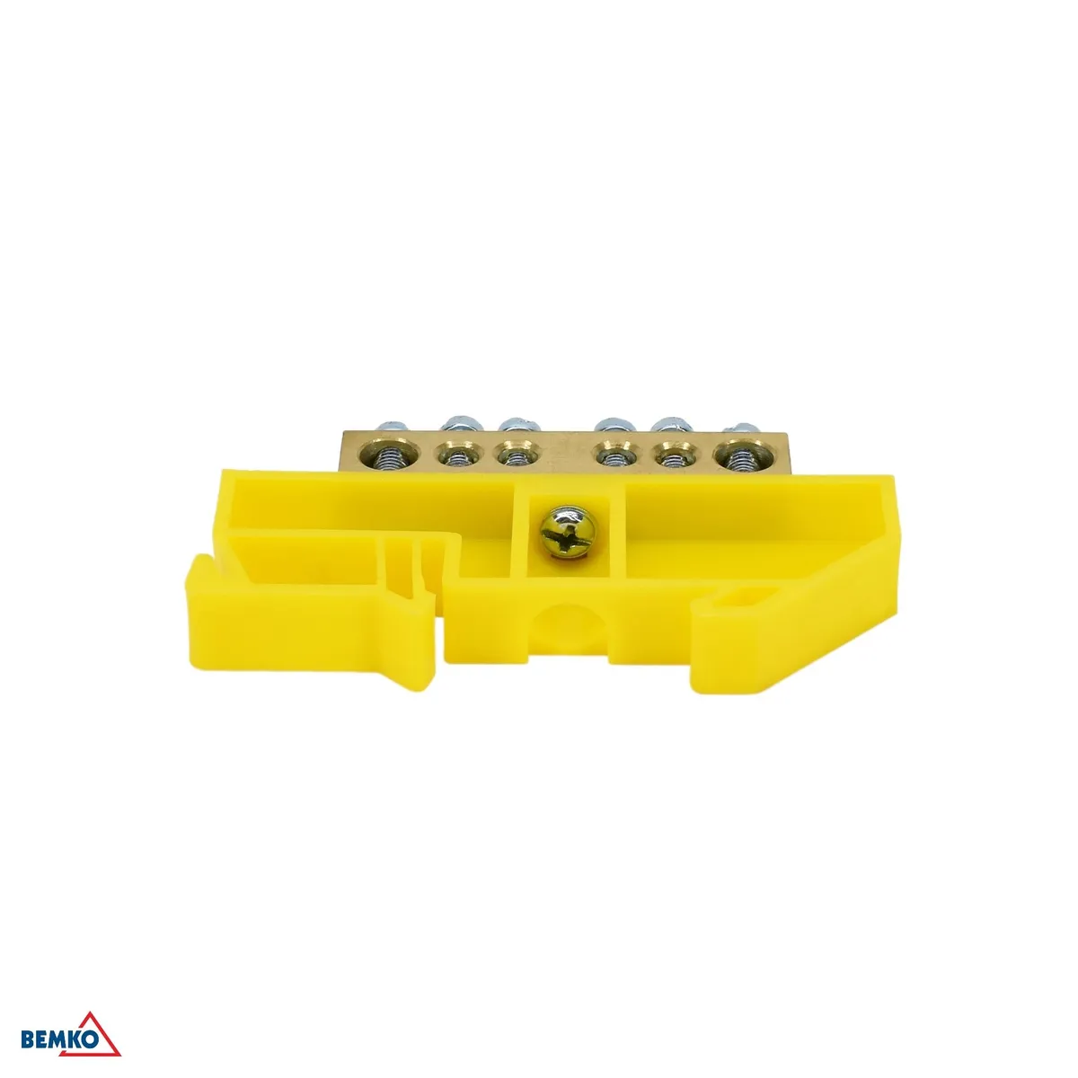Klemmiliist Schelinger 6-pooluseline, mõeldud paigaldamiseks DIN/TH 35mm liistule. Klemmide arv 6 x 6.0mm, maksimaalne vool 125A, isolatsioonipinge 500V. Moodulite arv 1, kollane. Pakend 10 tk, kast 160 tk.