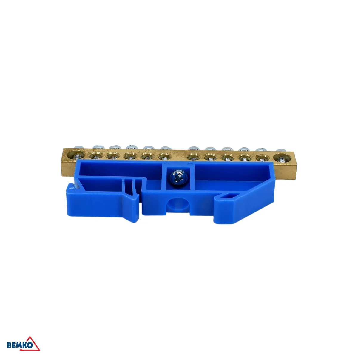 Klemmliist DIN-liistule (35 mm TH rail) 12 pooluse ühendamiseks, igal klemmil 6,0 mm ristlõige. Maksimaalne vool 125 A, isolatsiooni nimipinge 500 V. Korpus sinine, laius 1 moodul. Tootja Schelinger, pakend 10 tk.