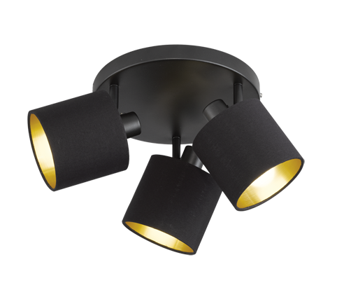 Kolmeosaline mattmusta ja kuldse tooniga kohtvalgustite komplekt loob sooja ja hubase õhkkonna tänu tekstiilist varjudele ning sobib tänu lihtsale ja modernsele disainile erinevatesse ruumidesse.