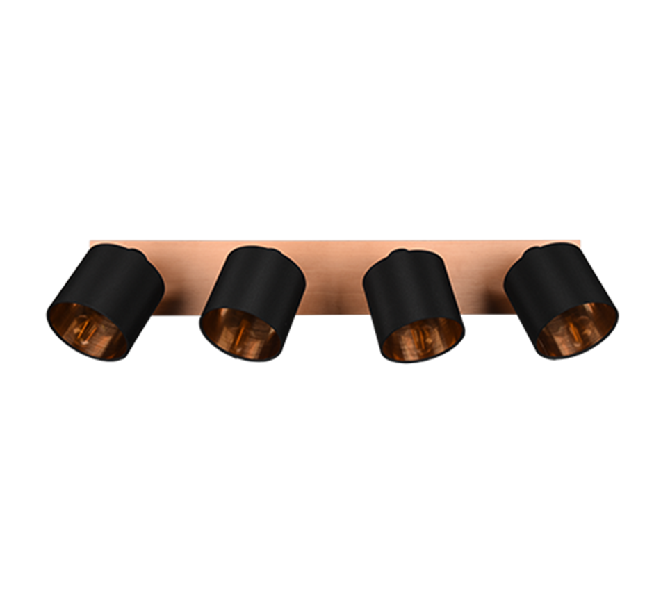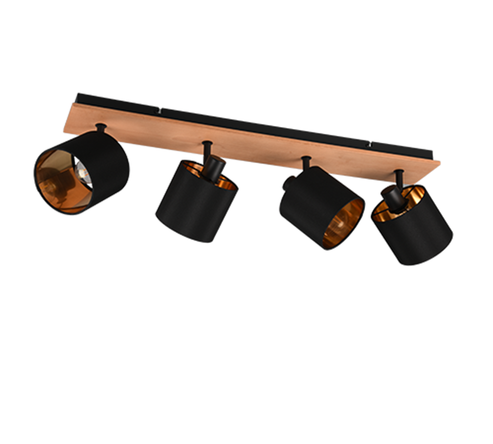 Nelja valguspalliga valgusti loob hubase ja sooja õhkkonna tänu tekstiilist varjudele ning sobib tänu lihtsale ja kaasaegsele disainile hästi erinevatesse ruumidesse. Mattmust ja puidust detailid lisavad interjöörile stiilsust ja kodusust.