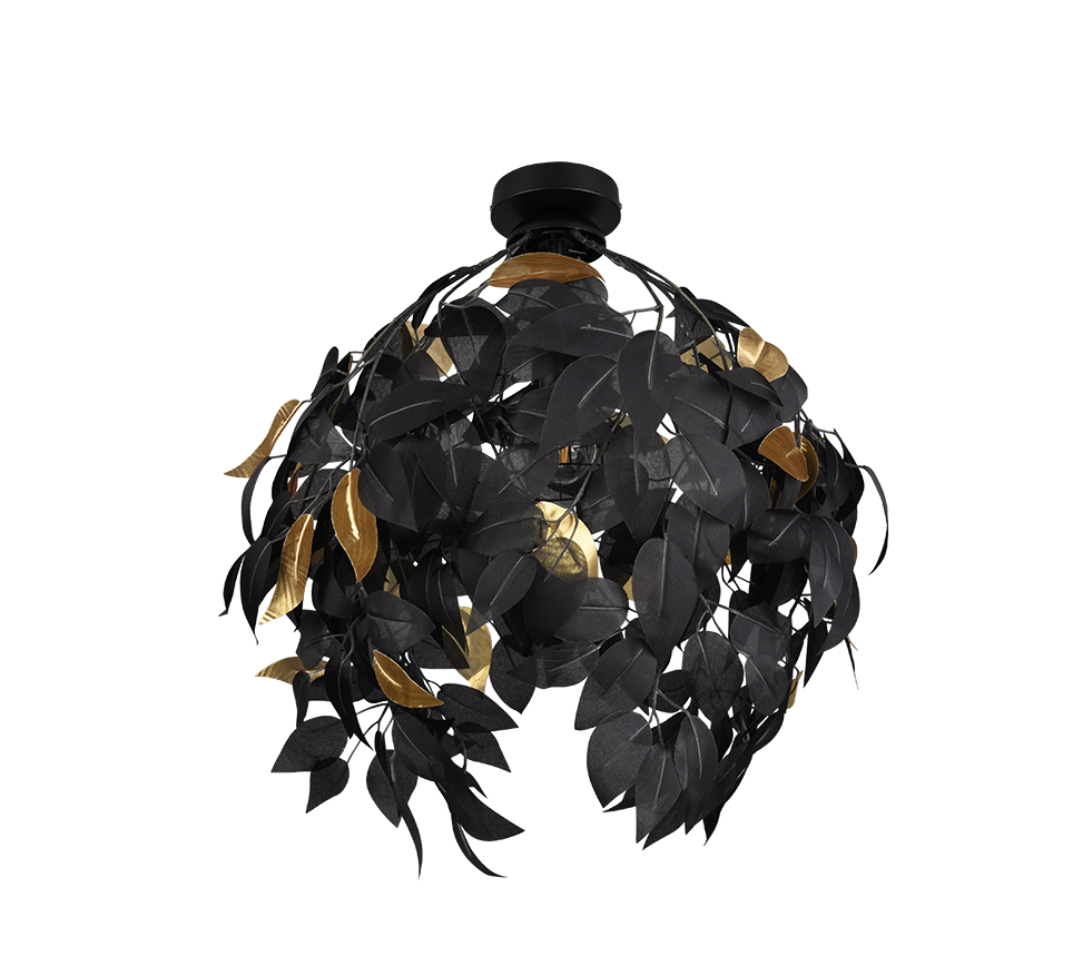 See laelamp paistab silma oma ainulaadsete mustade ja kuldsete plastiklehtedega, mis loovad elutuppa stiilse ja hubase õhkkonna. Sobib ideaalselt kaasaegsesse interjööri, pakkudes meeldivat ja meelitamist valgustust.
