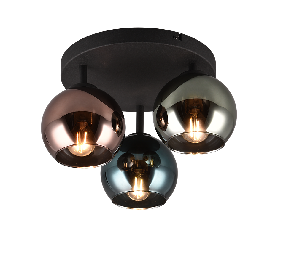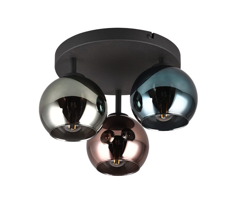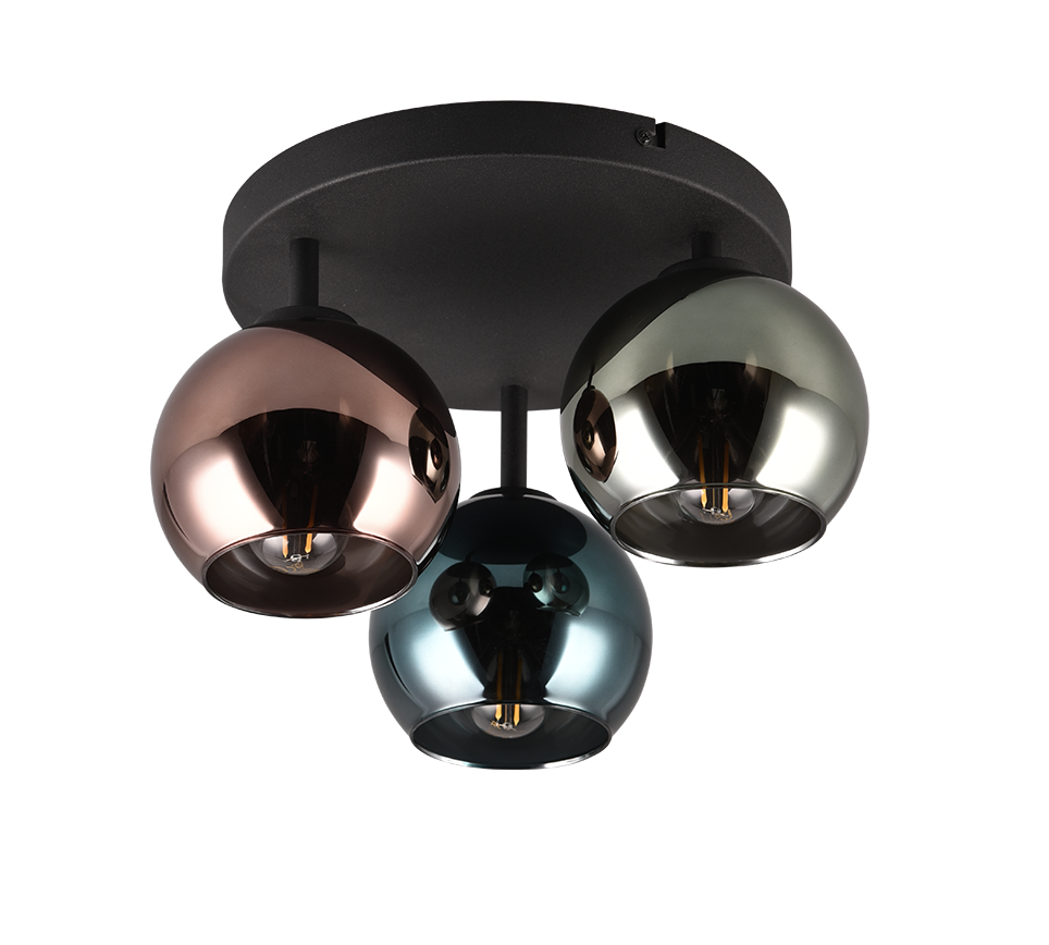 Kolme värvilise klaasist varjuga laelamp loob ruumi erilise valgusmängu ja hubase atmosfääri, muutes teie magamistoa või elutoa stiilseks ja kutsuvaks. Pehmed orgaanilised vormid ja peegelduv pind lisavad interjöörile unikaalset võlu.