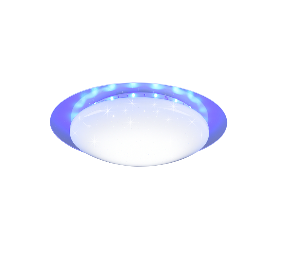Lihtsa disainiga laelamp pakub peamist valgust ja eraldi juhitavat RGBW valgusrõngast, mis loob meeleolu erinevates värvitoonides. Valge kate ja läbipaistev äär lisavad ruumile stiilset ja kaasaegset ilmet.