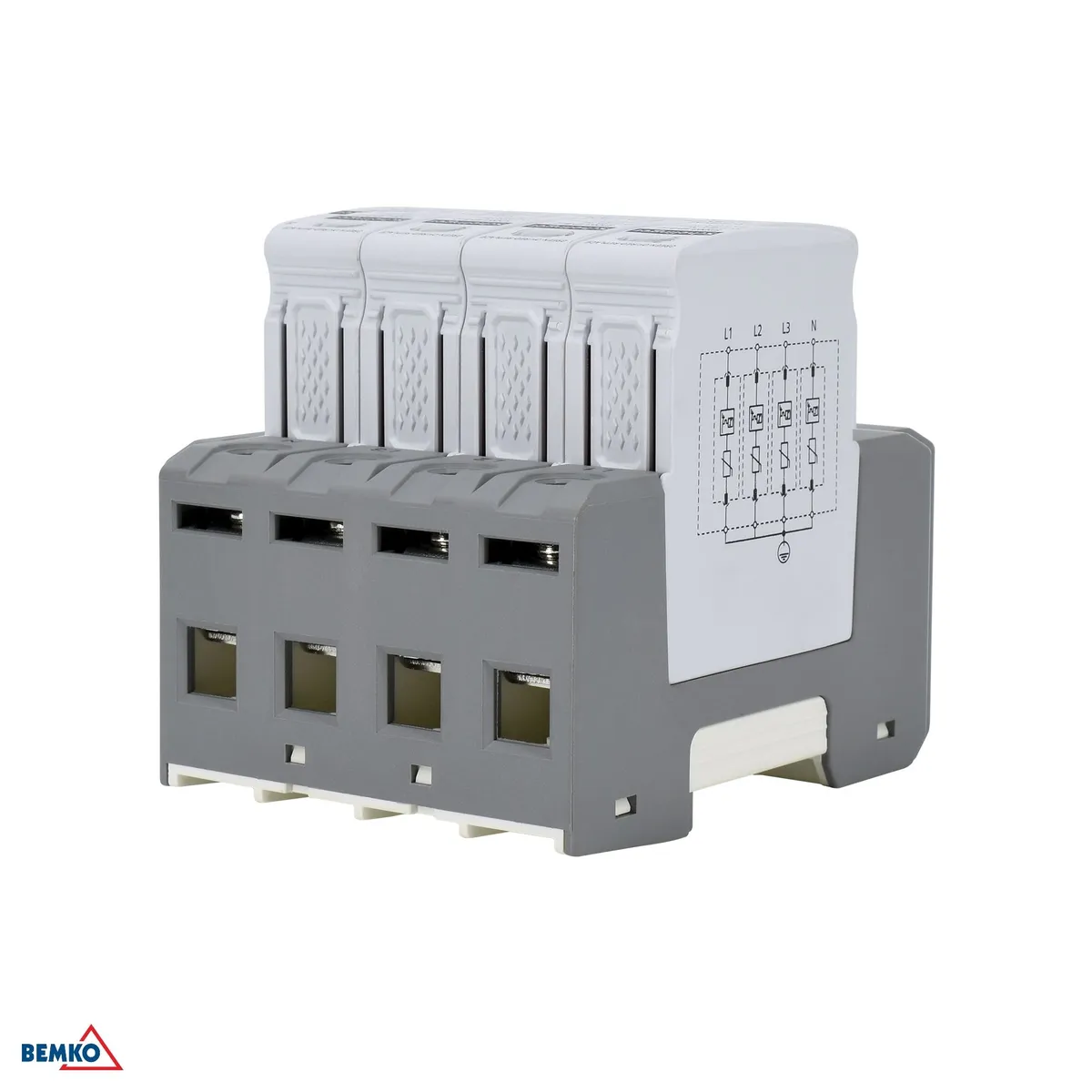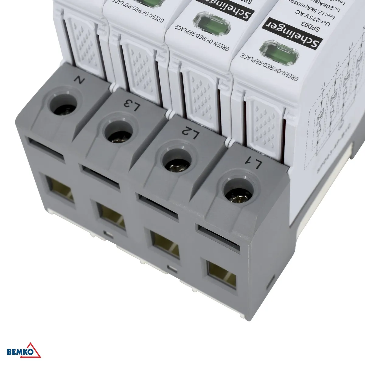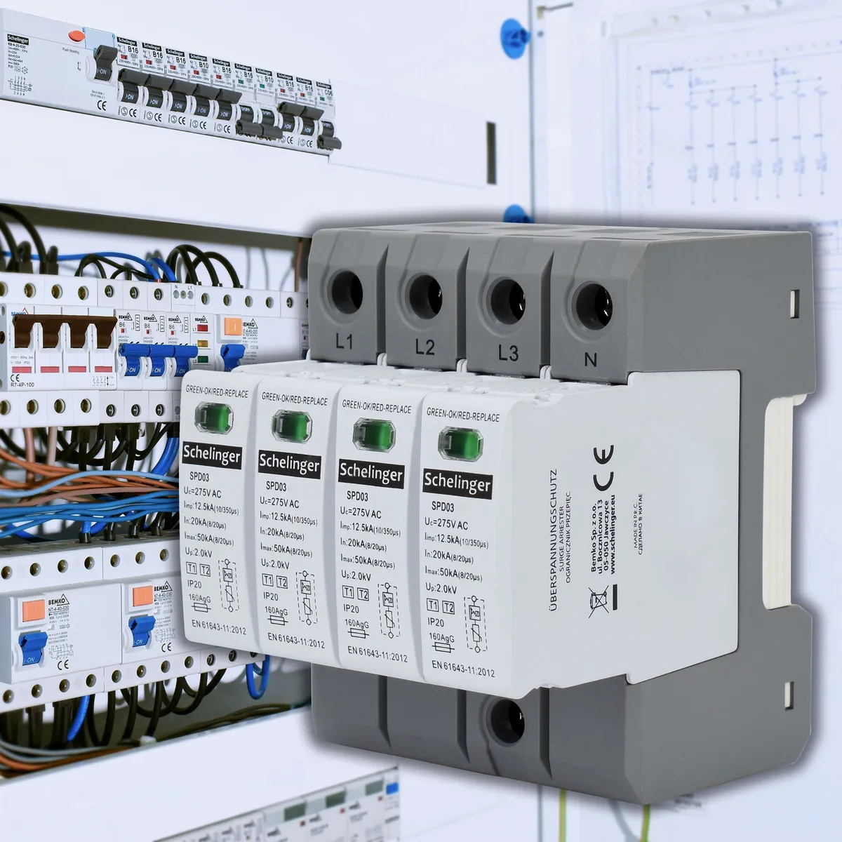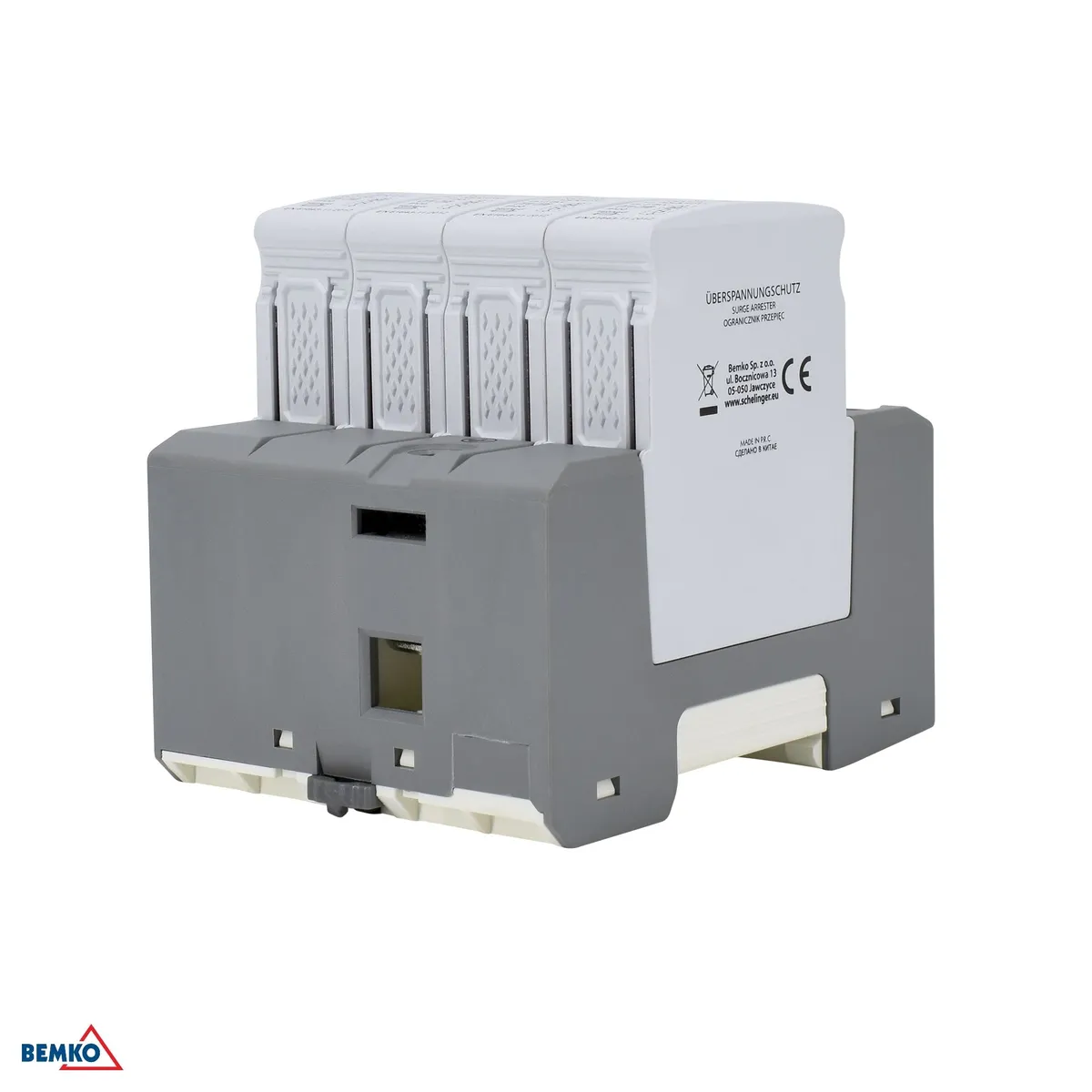 Schelinger 4-polaarne liigpingepiirik klass T1+T2 (B+C) kaitseks elektrisüsteemi välgulöökide ja kommutatsioonipingete eest.