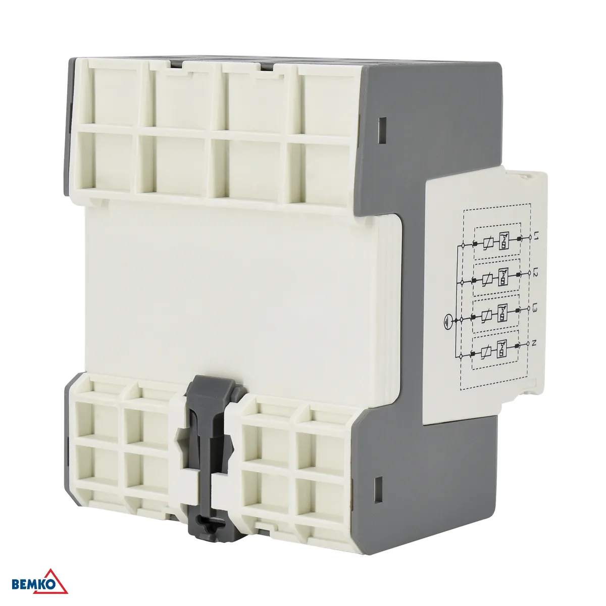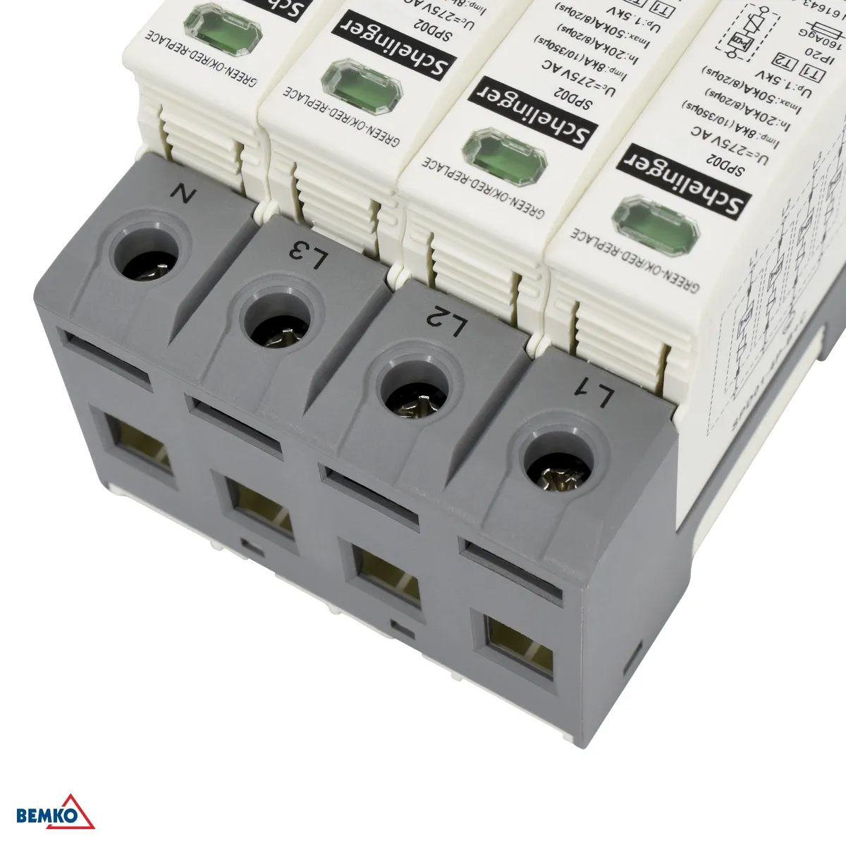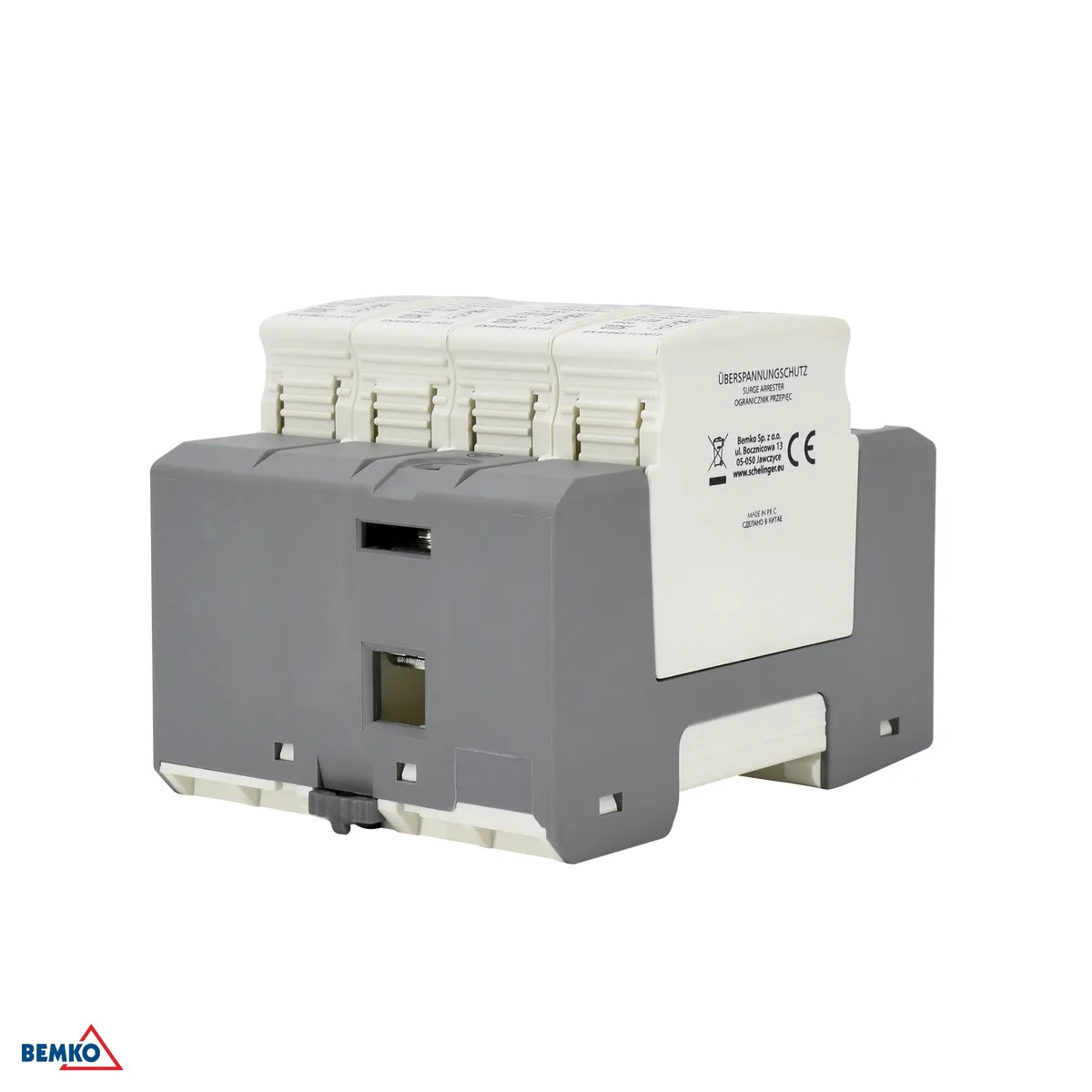 Schelinger 4P liigpingepiirik klass T1+T2 (B+C), paigaldatav TH 35 DIN-latile, 4 moodulit.