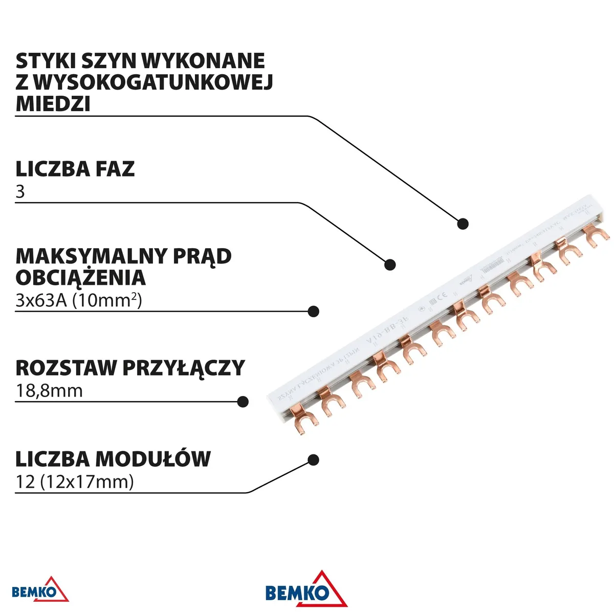 Busbar 3F Type-U 10mm² 12 Modules.