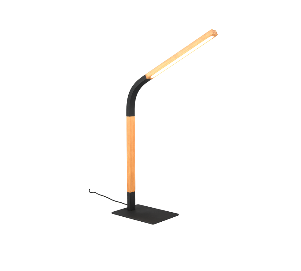 See laualamp loob meeldiva ja silmasõbraliku valgusõhkkonna, mis sobib ideaalselt nii kontorisse kui ka koduseks tööalaks. Tänu integreeritud lülitiga hämardusfunktsioonile saab valgustugevust mugavalt reguleerida kolme astme vahel, võimaldades keskenduda nii detailsele tööle kui ka rahulikuks lugemiseks. Musta ja naturaalse puidu kombinatsioon lisab ruumile stiili ning sobib hästi nii modernsesse kui ka klassikalisse interjööri. LED-valgusti tagab energiasäästu ja pika kasutusea, muutes selle praktiliseks ja keskkonnasõbralikuks valikuks iga töölaua jaoks.