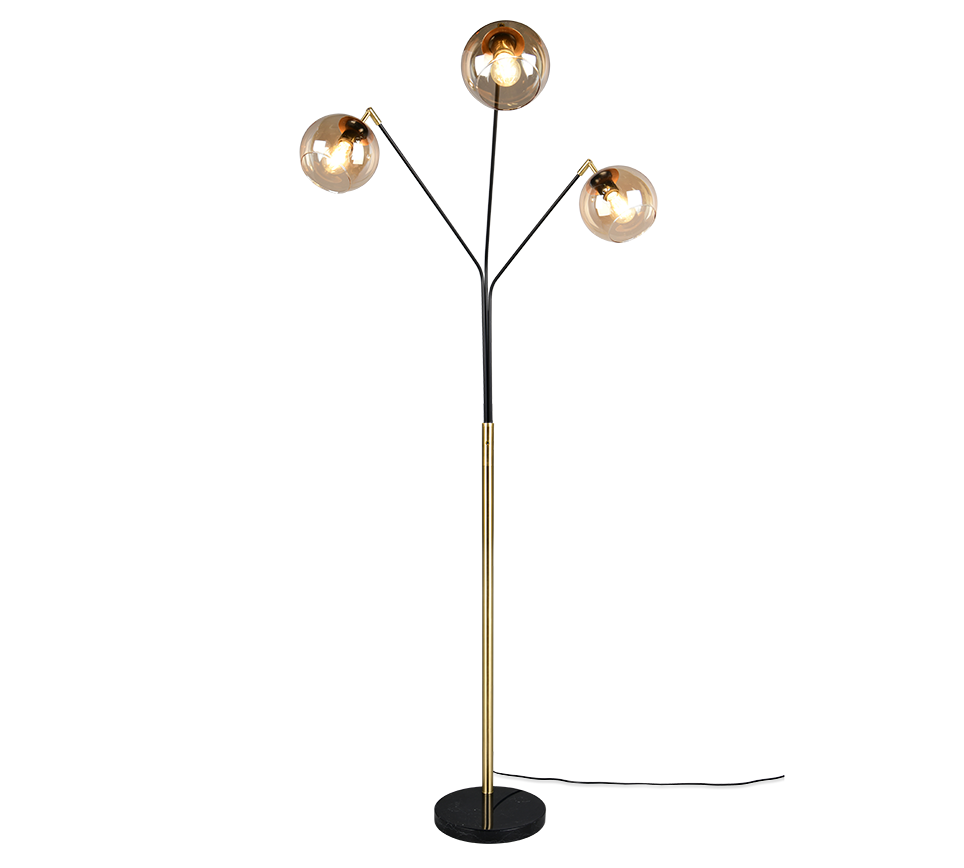 See stiilne põrandalamp ühendab endas modernse musta ja elegantse kuldse tooni, tuues ruumi sooja ja kutsuva õhkkonna. Kolme E27 lambipesaga valgusti võimaldab valida erineva heleduse ja valguse toonide vahel, sobides ideaalselt nii lugemisnurga valgustamiseks kui ka õhtuse meeleolu loomiseks elutoas või magamistoas. Selle lihtne, kuid pilkupüüdev disain täiendab igat interjööri, muutes selle praktiliseks ja kauniks lisandiks kodu või kontori sisustuses.