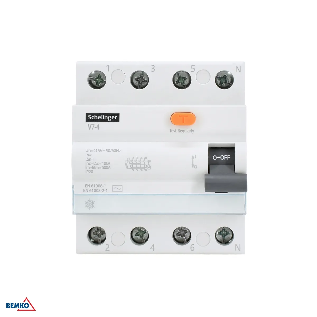 Differential Circuit Breaker AC 4P 40A 30mA SCHELINGER. In: 40A, 415V~ 50/60Hz, Char: AC, IP20