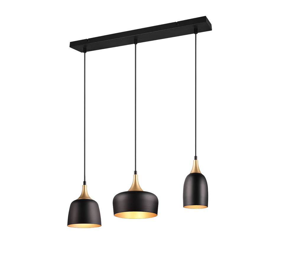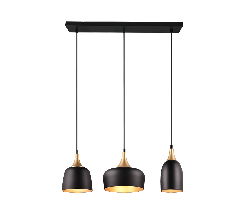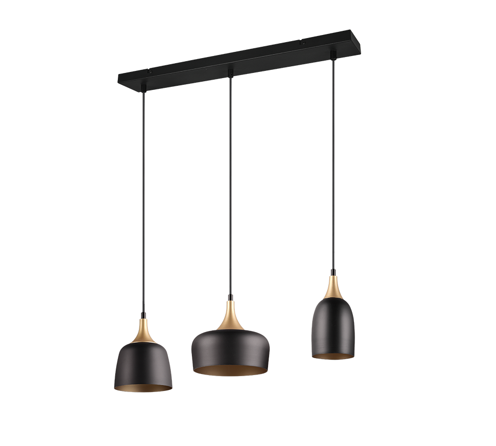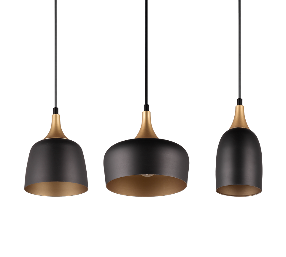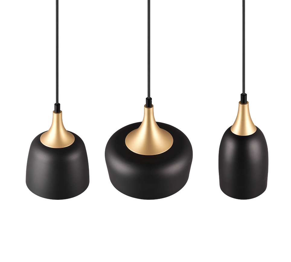 See kolmikpendel ühendab tööstusliku stiili ja elegantse sooja kuldse tooniga, mis lisab teie ruumile unikaalset iseloomu ja hubasust. Erineva kujuga ja kõrgusega varjud loovad põneva valgusefekti, muutes selle valgusti nii praktiliseks kui ka dekoratiivseks lahenduseks näiteks köögi, söögitoa või elutoa valgustamiseks. Mattmust ja mattkuldse viimistlusega valguspallid sobivad ideaalselt kaasaegsesse lofti või minimalistlikku interjööri, tuues ruumi stiili ja soojust üheskoos.