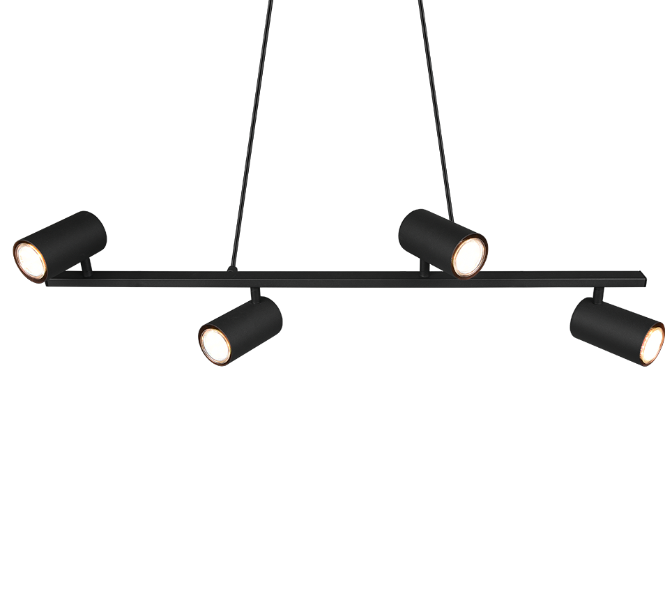 See nelja valgusallikaga riputusküünal ühendab endas stiilse ja tagasihoidliku disaini ning kvaliteetse viimistluse, mis sobib ideaalselt nii kööki kui ka elutuppa. Matt must viimistlus lisab ruumile modernset ja elegantset tunnet, samas kui GU10 lambipesad võimaldavad kasutada energiasäästlikke LED valgustid, mis tagavad meeldiva ja efektiivse valguse. Tänu oma praktilisele pikkusele on see valgusti suurepärane valik nii toiduvalmistamise ala valgustamiseks kui ka hubase õhkkonna loomiseks kodus.