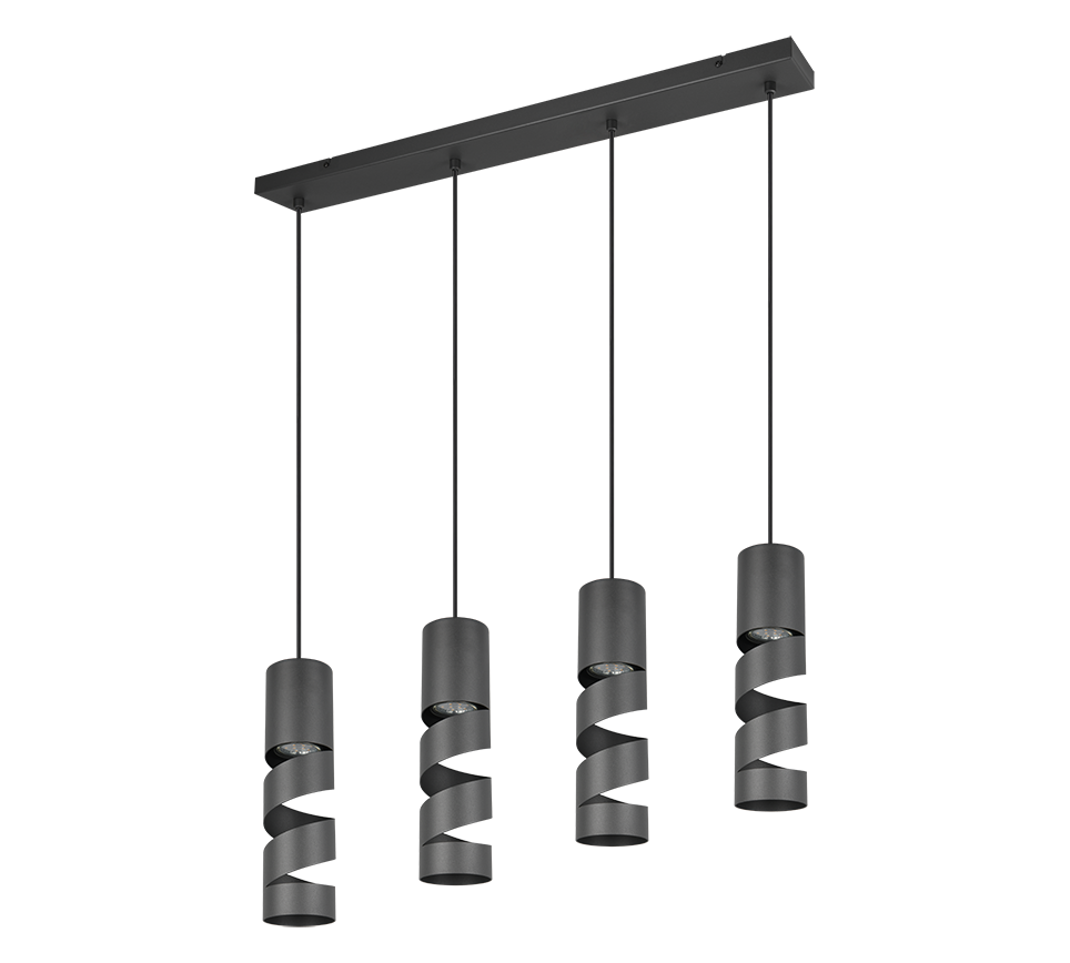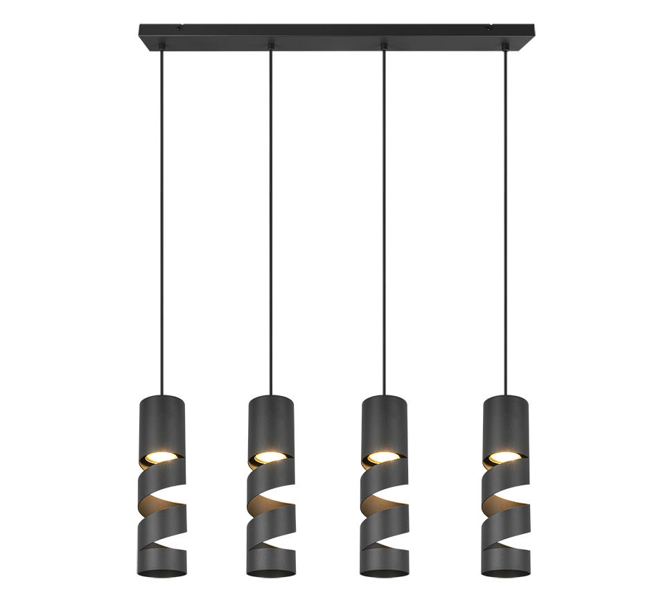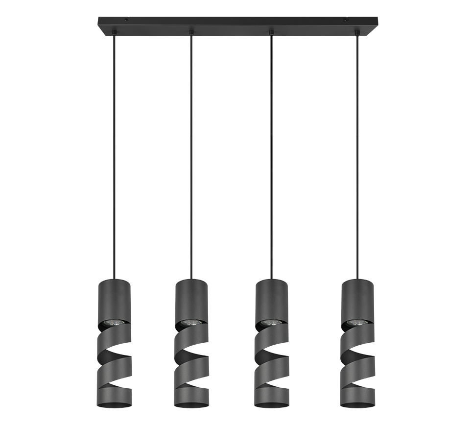 See nelja valgusega riputusküünal ühendab endas kaasaegse ja ajatu disaini, mis meenutab elegantseid spiraale, lisades ruumile stiili ja iseloomu. Õhuke, silindriline kuju sobib ideaalselt nii elutuppa, kööki kui ka söögituppa, kus on vaja suunatud ja meeldivat valgustust. Mattmust viimistlus annab sellele valgusallikale luksusliku ja samas tagasihoidliku ilme, mis sobib hästi nii modernse kui klassikalise sisekujundusega. Valgustid on paindlikud ja sobivad GU10 LED pirnidega, pakkudes säästlikku ja tõhusat valgustust igapäevaseks kasutamiseks. See lamp loob hubase atmosfääri ning on praktiline valik nii kodus kui ka kontoris.