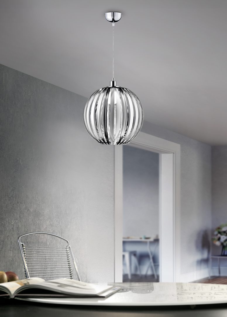 Kaasaegne ja stiilne riputuslamp, mille kromaatne viimistlus sobib hästi erinevatesse ruumidesse, lisades neile ajatu elegantsi ja meeldiva valguse. Suur 40 cm läbimõõduga valguspall loob hubase ja ühtlase valgustuse.
