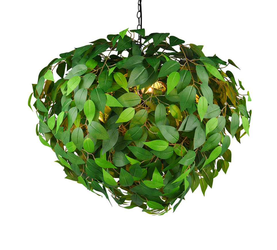 Too oma koju džungli hõngu selle roheliste plastiklehtedega riputiga, mis loob hubase ja värske atmosfääri. Sobib ideaalselt nooruslikku elustiili rõhutavatesse ruumidesse, pakkudes silmapaistvat ja meeldivat valgustust.