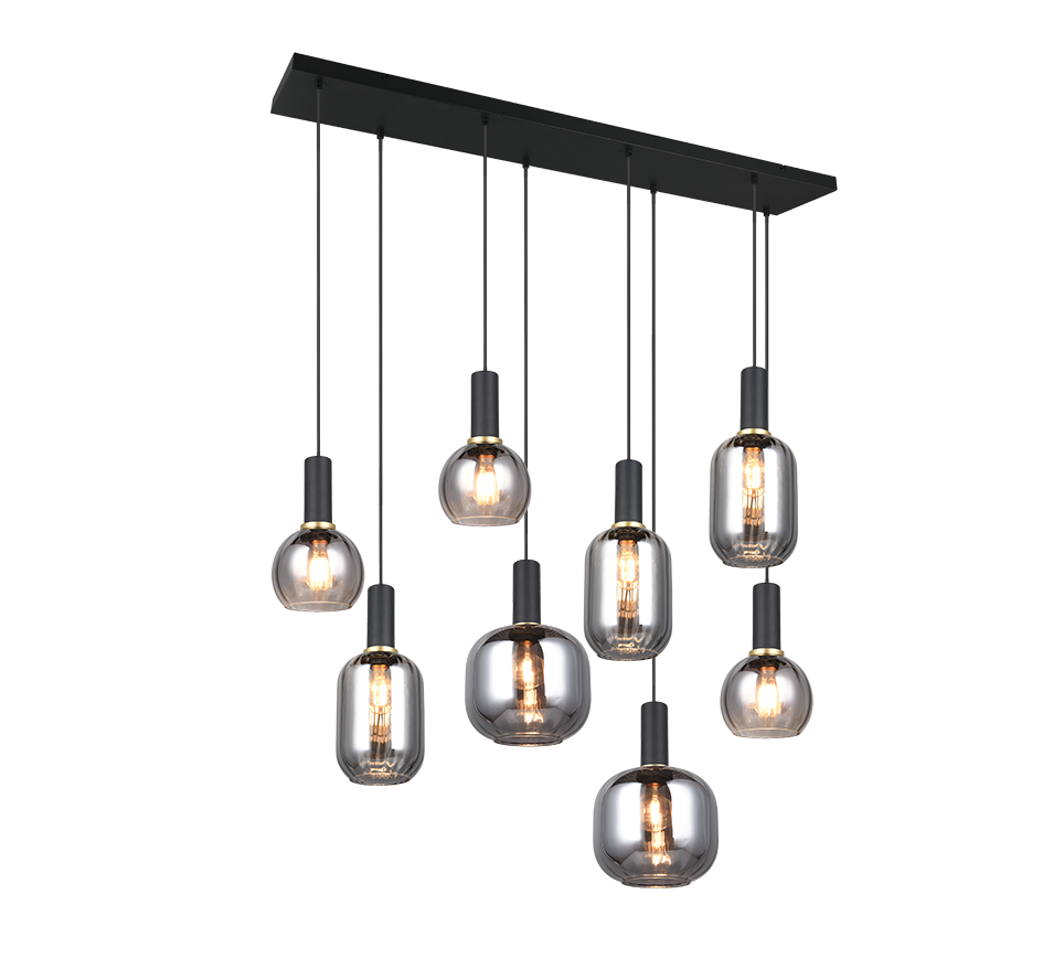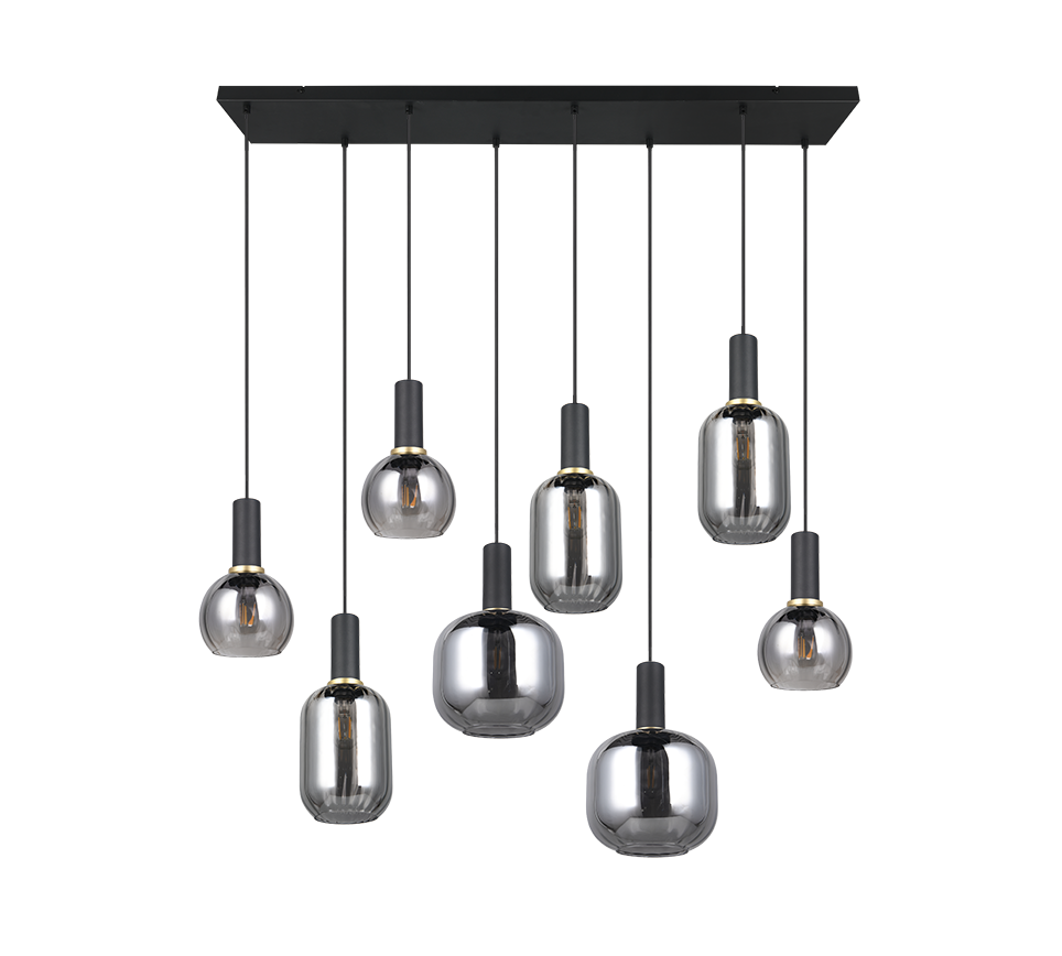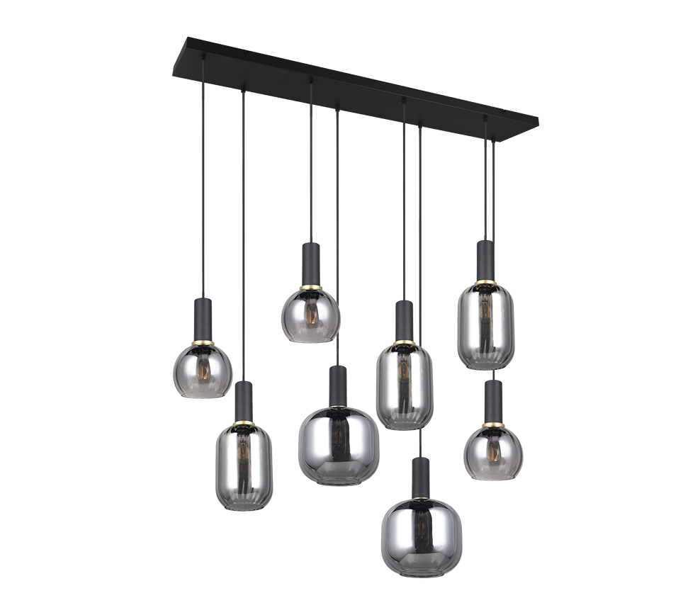 See stiilne ja mitmekülgne valgusti lisab teie koju või kontorisse erilise atmosfääri, sobides ideaalselt söögilaua, kohvilauda või köögisaare kohale riputamiseks. Klaasist vari pehmendab valgust ja loob hubase ning kutsuva õhkkonna, samas kui matt must ja kroomitud viimistlus annavad modernse ja elegantse ilme. Tänu kaheksa valguspalli rühmale valgustab see valgusti ruumi ühtlaselt ning tõmbab kõigi pilgud endale, muutes selle nii praktiliseks kui ka dekoratiivseks lahenduseks igasse interjööri.