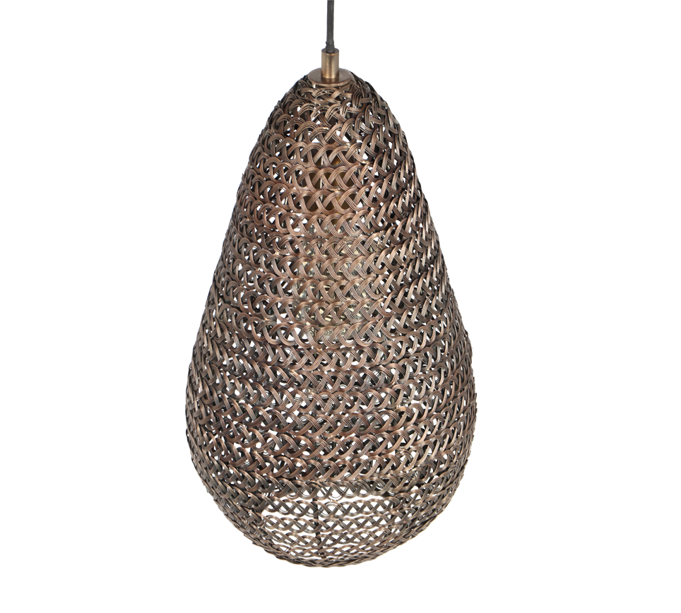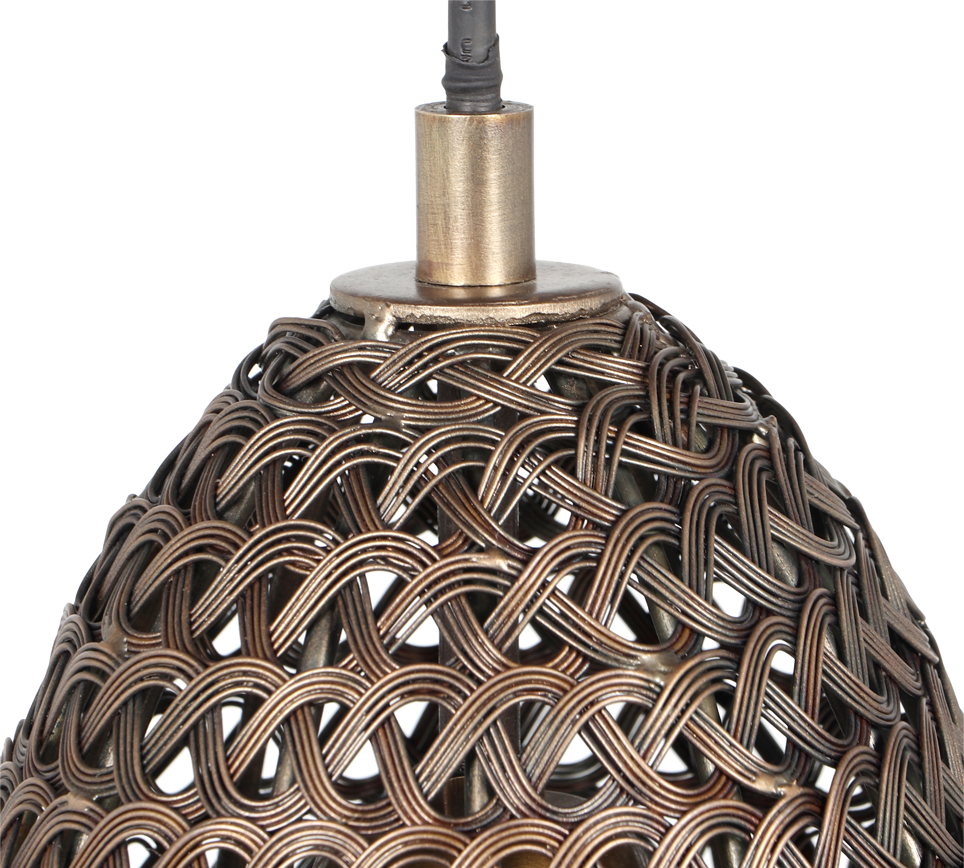 Elegantse traadivõrgu disainiga riputivalgusti loob toas põneva valguse ja varju mängu, sobides eriti hästi söögitoas või köögisaare kohal stiilseks aktsendiks. See matt musta ja vana messingiga valgusti lisab ruumile sooja ja kaasaegset atmosfääri.