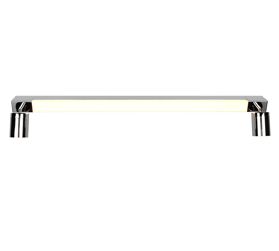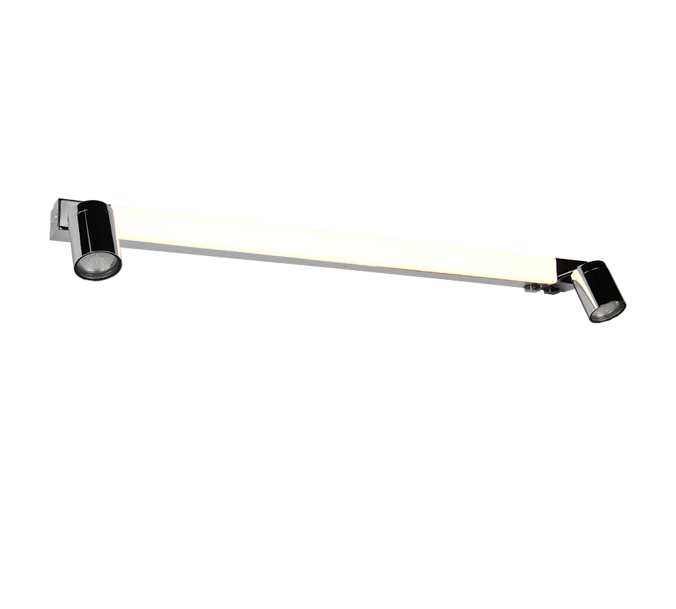 See stiilne ja modernne vannitoavalgusti pakub meeldivat ja ühtlast valgustust, mis sobib ideaalselt peegli ette või vannitoa üldvalgustuseks. Pika ja elegantse disainiga valgusallikas tagab ruumi valgustamise, samal ajal kui kaks suunatavat GU10 LED-spotvalgustit mõlemal küljel võimaldavad luua täpselt soovitud valgusefekte ja rõhutada olulisi alasid. Kroomviimistlus lisab vannitoale kaasaegset sära ning vastupidav LED-tehnoloogia tagab energiasäästu ja pika kasutusea. See valgusti sobib suurepäraselt nii kodusesse vannituppa kui ka professionaalsetesse ilusalongidesse või spaadesse, kus on oluline mugav ja stiilne valgustus.