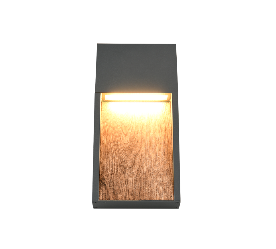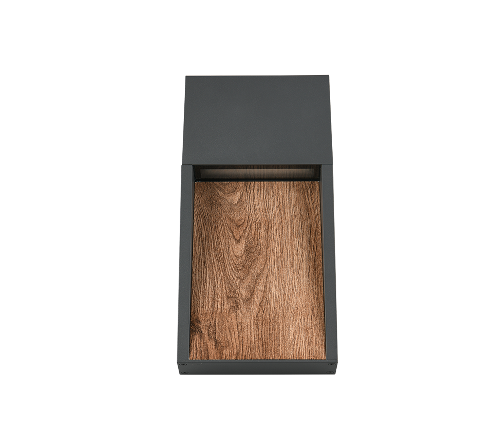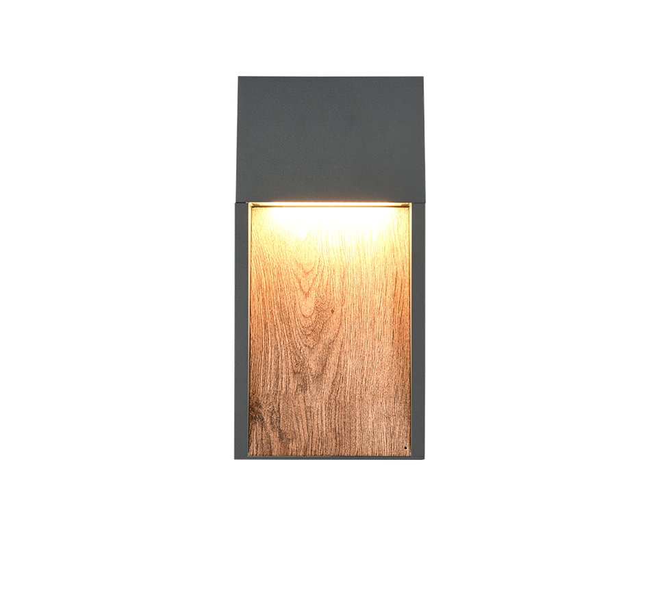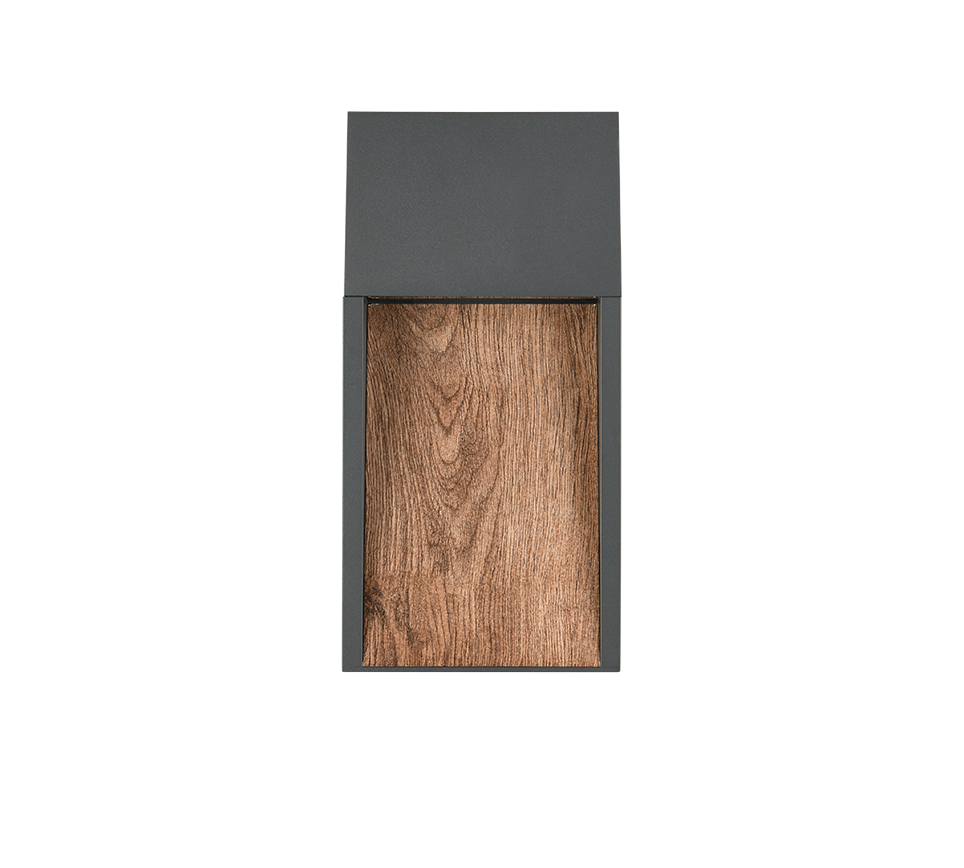 See LED välisvalgusti pakub meeldivat hajutatud valgustust ja stiilset puidust-antratsiidi disaini, mis sobib ideaalselt ukse kõrvale või maja fassaadile. See ühendab funktsionaalsuse ja kauni välimuse, muutes teie õue hubaseks ja turvaliseks.